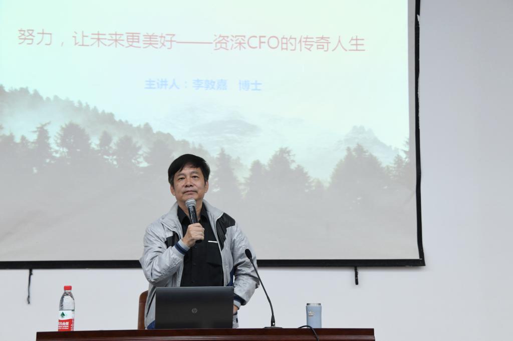 讲座中,李敦嘉从个人的人生经历出发,真诚朴实的畅谈了他的传奇人生,从早年当过木匠、做过铁路工人、农村八插队年,到高考恢复后凭借努力考入嘉兴学院的前身——浙江冶金经济专科学校,再到毅然选择辞去富阳财政局机关工作远赴北京财政部科研所研究生部求学深造,又以40多岁年龄选择从国家审计署处级领导岗位下海到金融街股份有限公司任财务总监。他将自己的人生经历总结为“挣扎向前”,却在每一个人生阶段都深刻的诠释了会计人的“求真、敬业”,也通过对自己人生历程分享,告诉同学们选择和努力是人生阶段的循环,“选择”是为了实现最适合的“努力”,“努力”是为了又足够多的选项。他希望同学们能尽早明确职业规划,努力克服安于现状的惰性,在学习的道路上培养自己的毅力、增长自己的智力,通过自己的努力赢得美好的未来。