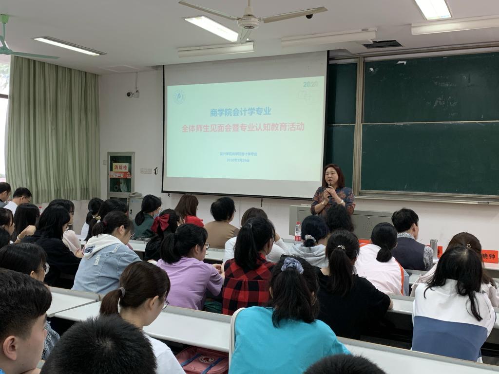 会计学系2020级师生见面会暨专业认知教育在教二A126举行。学院院长、会计学专业负责人潘煜双教授,会计学系全体专任教师、辅导员、助理辅导员和2020级新生参加见面会。见面会由会计学系主任崔晓钟主持。